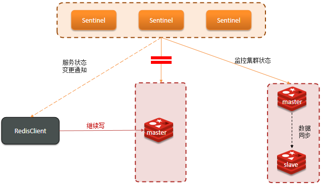 ❒ 集群脑裂是由于主节点和从节点和sentinel处于不同的网络分区,使得sentinel没有能够心跳感知到主节点,所以通过选举的方式提升了一个从节点为主,这样就存在了两个master,就像大脑分裂了一样,这样会导致客户端还在老的主节点那里写入数据,新节点无法同步数据,当网络恢复后,sentinel会将老的主节点降为从节点,这时再从新master同步数据,就会导致数据丢失。 解决:我们可以修改redis的配置,就可以避免大量的数据丢失。 ❒ redis中有两个配置参数: # 与主节点通信的从节点数量必须大于等于该值主节点,否则主节点拒绝写入 # 表示最少的salve节点为1个 min-slaves-to-write 1 # 主节点与从节点通信的ACK消息延迟必须小于该值,否则主节点拒绝写入 # 表示数据复制和同步的延迟不能超过5秒 min-slaves-max-lag 5 ✔ 这两个配置项必须同时满足,不然主节点拒绝写入。在假故障期间不满足min-slaves-to-write和min-slaves-max-lag的要求,那么主节点就会被禁止写入,脑裂造成的数据丢失情况自然也就解决了。