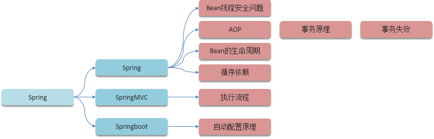 spring → bean线程安全问题 spring → aop → 事务原理 → 事务失败 spring → bean的生命周期 spring → 循序依赖 springMVC → 执行流程 springboot → 自动配置原理