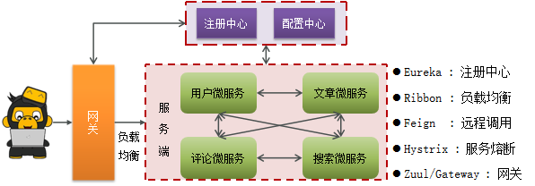 ✔ 如果前端调用后台接口,可以统一走zull网关进入,通过zull网关转发请求给对应的服务。